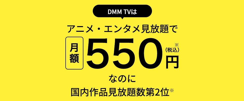 DMM TVは、月額550円というワンコイン価格で、アニメ6,300作品以上が見放題。※2025年7月時点