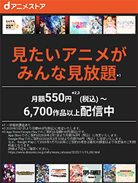 - 月額550円でアニメ6,200作品以上が見放題 ※2025年7月時点